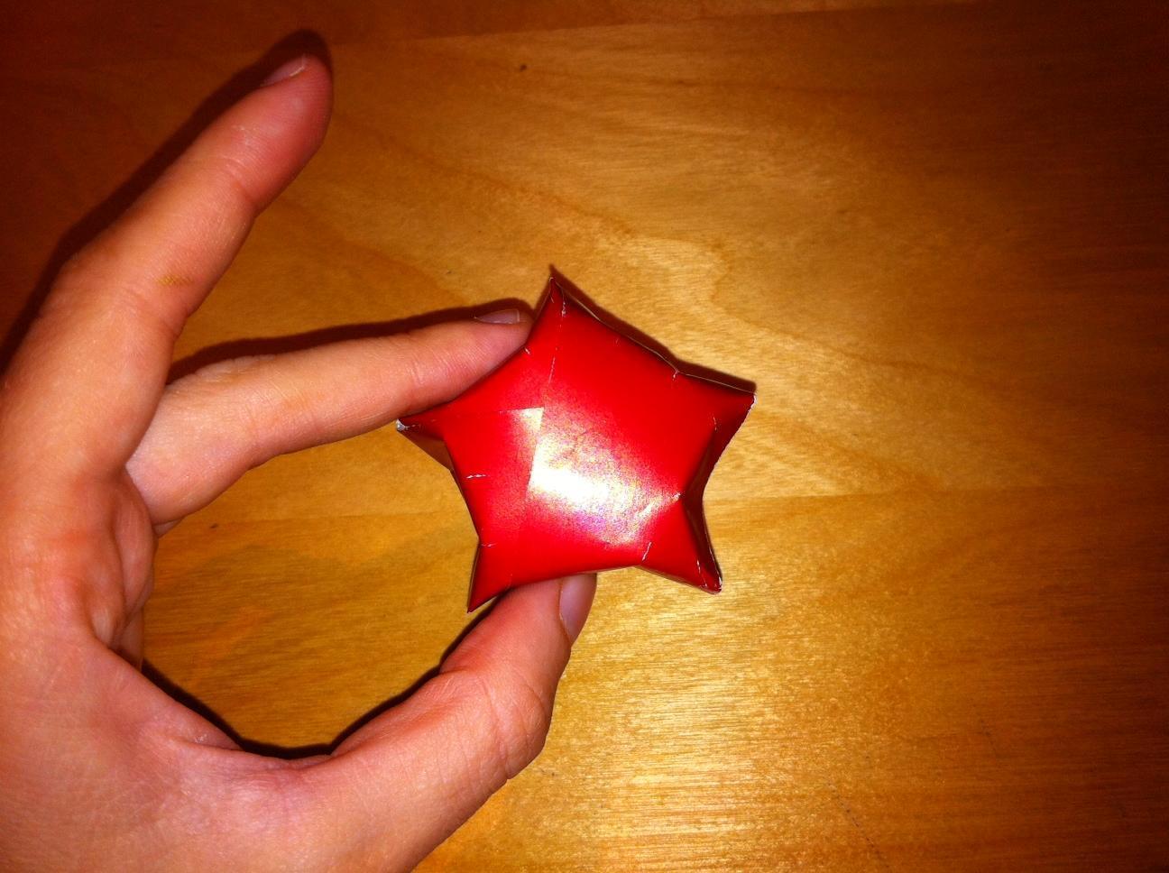 Se tiver cartão de alguma embalagem ou de uma caixa de sapatos, pode aproveitá-lo para fazer uma estupenda estrela 3D para a árvore de Natal.