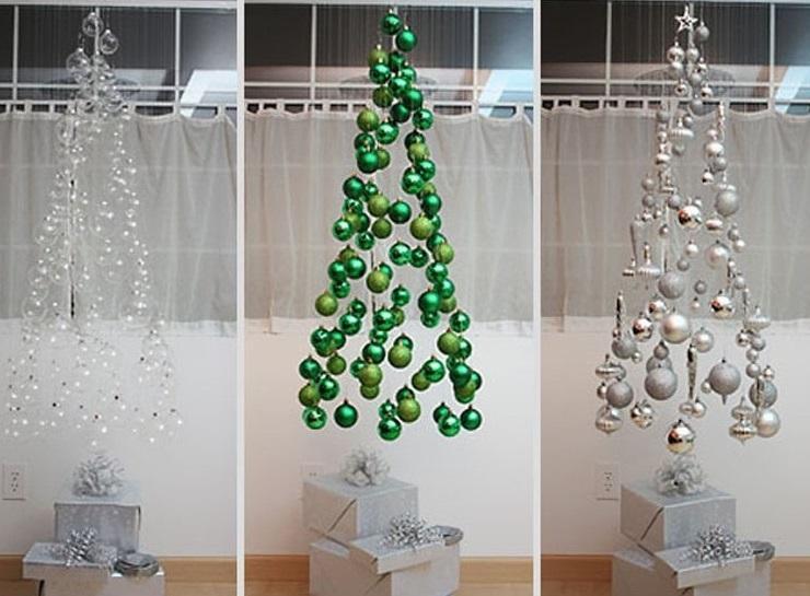 Embora possa ser algo mais trabalhoso e complicado de fazer, as árvores de Natal flutuantes são super originais e não deixam ninguém indiferente. Consegue-se criar uma ilusão óptica que parece que as bolas natalinas ficam, literalmente, flutuando no ar sem nenhuma estrutura que lhes faça suporte.