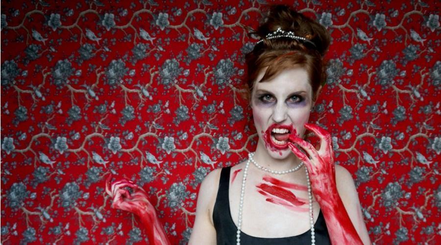 O engraçado seria escolher um personagem que se defina pela sua beleza e glamour, como Marlilyn Monroe e Audrey Hepburn, mas depois maquiar-se e incluir sangue e as feridas próprias dos zumbis.