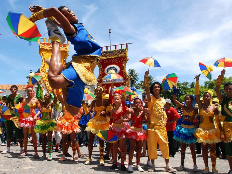 O frevo é uma das mais fortes expressões do Carnaval Pernambucano, principalmente em Recife e Olinda, onde as ruas são tomadas por um mar de gente alegre e o ritmo que predomina é o compasso ligeiro e marcado dos instrumentos com som mais metálico característico. Vestimentas coloridas e uma sombrinha fazem parte do figurino.