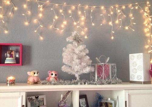 Uma tendência que está muito na moda é decorar o quarto com luzes de natal. Se ainda não aderiu a esta nova tendência, então o natal é a altura perfeita para isso. Basta pegar nas luzes pisca pisca e colocar ao redor da janela do seu quarto, em cima da cabeceira da sua cama, ao redor de alguma moldura com fotografias que tiver ou colocar simplesmente em cima de uma mesa.