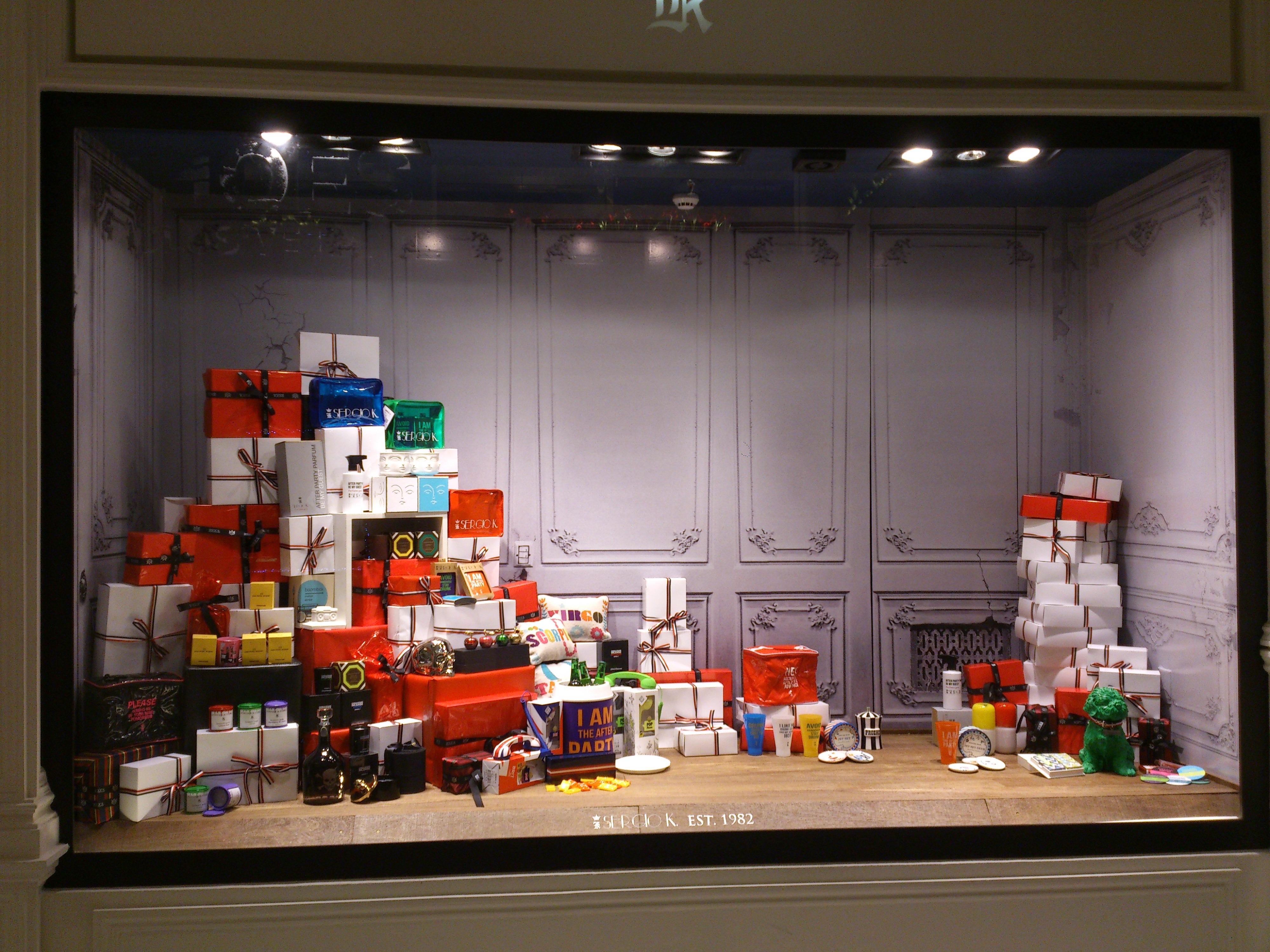 Uma ideia que funciona em lojas de diferentes tipos de produtos é fazer uma montanha de presentes com os produtos da loja. Pode ir alternando entre caixas de presentes e os seus produtos ou colocar os produtos em cima das caixas de presente.