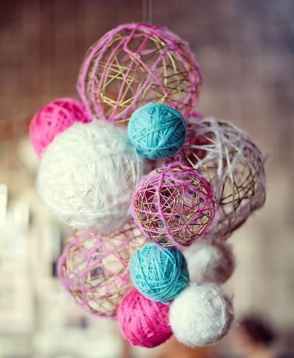 Com estas lindas bolas de natal com barbante você poderá decorar as luzes pisca pisca de natal. Para isso, basta fazer pequenas bolas de barbante e depois pendurar em cada um das luzes de natal.