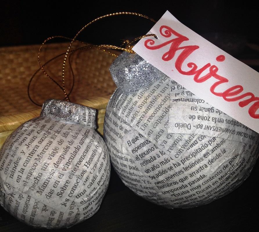 Simples! Já temos prontas as nossas bolas de Natal com papel de jornal. É um trabalho manual original e criativo que lhe servirá para elaborar um bonito enfeite para decorar a árvore de Natal. Se lhe quiser dar um pouco de cor, pode personalizar as bolas colocando etiquetas com nomes. Utilize cores vistosas e chamativas e verá que ficam bem.