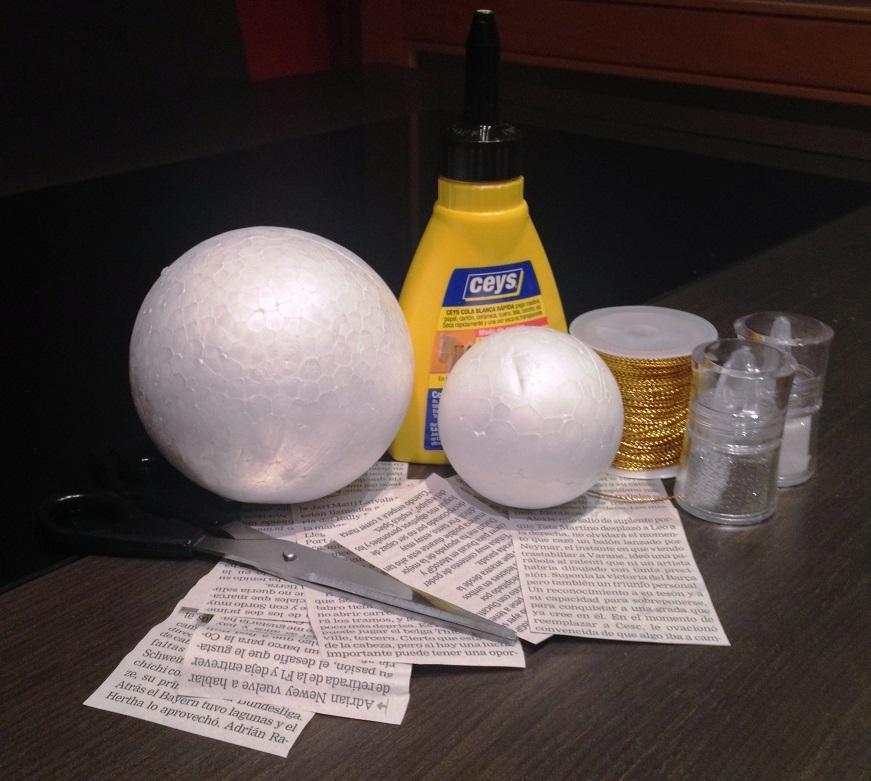Antes de começar a fazer estas bolas de Natal caseiras, vejamos que materiais precisamos: