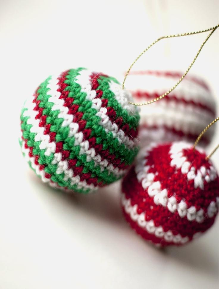 Tricotadas. Enquanto que no Brasil o Natal se comemora no verão, no hemisfério norte ele se realiza no inverno, estação em que as peças em lã e malha são essenciais. Você pode se inspirar nisso e tricotar um revestimento em lã para as bolas de isopor, com motivos natalinos ou simplesmente com cores de Natal. Caso não saiba fazer isso, peça a sua mãe ou avó, certamente que elas saberão tricotar!