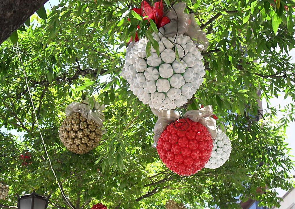 Como fazer bolas natalinas de garrafa pet