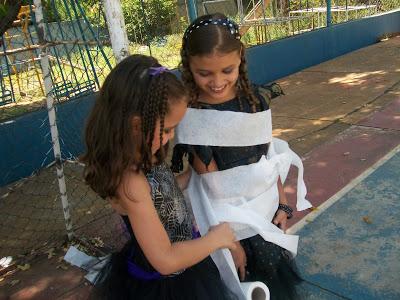 - Separe as crianças em equipes de dois, de forma com que uma delas seja a que irá enrolar o colega e a outra seja a própria "múmia";
