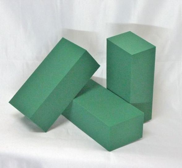 Em primeiro lugar, compre alguns recipientes de plástico redondos para introduzir neles essa esponja da imagem. São uma espécie de esponja floral verde que deixa grampear flores e objetos punçantes. Desta maneira nos permitirá pôr os adornos que quisermos e ficarão amarrados e fazendo forma arrendondada.