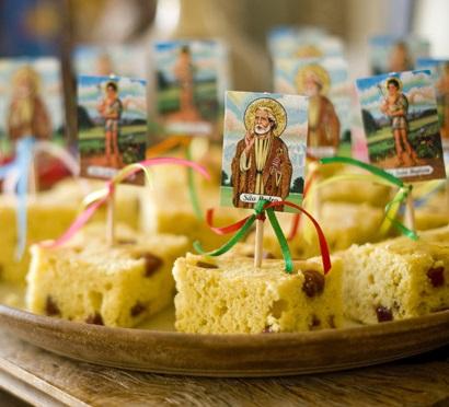 E já que estas festas se realizam em homenagem a São João, São Pedro e Santo António, porque não incluir também estes santos na decoração? Não necessita de reunir as estatuetas deles, apenas usar imagens deles em pequenos pormenores, como para enfeitar a comida, segundo o exemplo da imagem ao lado.
