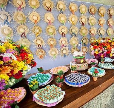 Um outro elemento muito típico das Festas Juninas são os chapéus de palha. Não deixe morrer a tradição e faça com que todos os seus convidados usem esse adereço, desta forma eles próprios contribuirão para a decoração do espaço. Como alternativa também pode colocar alguns pendurados nas paredes, nas cadeiras ou em miniatura espalhados pelas mesas.