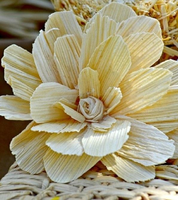 Para tornar todo o ambiente mais alegre e vivo, reúna várias espécies de flores e disponha-as por todo o espaço. Use também cascas de milho para complementar a decoração florida, podendo mesmo moldá-las em forma de flor.