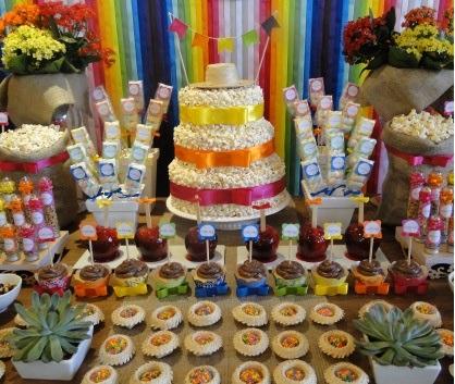 Inclua fitas coloridas por todo o lado! Estas fazem também parte da decoração tradicional da Festa Junina e são muito versáteis, podendo ser utilizadas para decorar a comida, as cadeiras, as barracas, as mesas, os talheres... enfim, tudo o que a imaginação permitir.