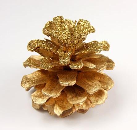 Outra boa opção é adicionar purpurina às pinhas, para conseguir brilhos que darão mais luz e cor à sua árvore de natal. Para isso, pode escolher pintá-las primeiro, por exemplo douradas ou prateadas, e esperar que sequem ou passar diretamente para o brilho.