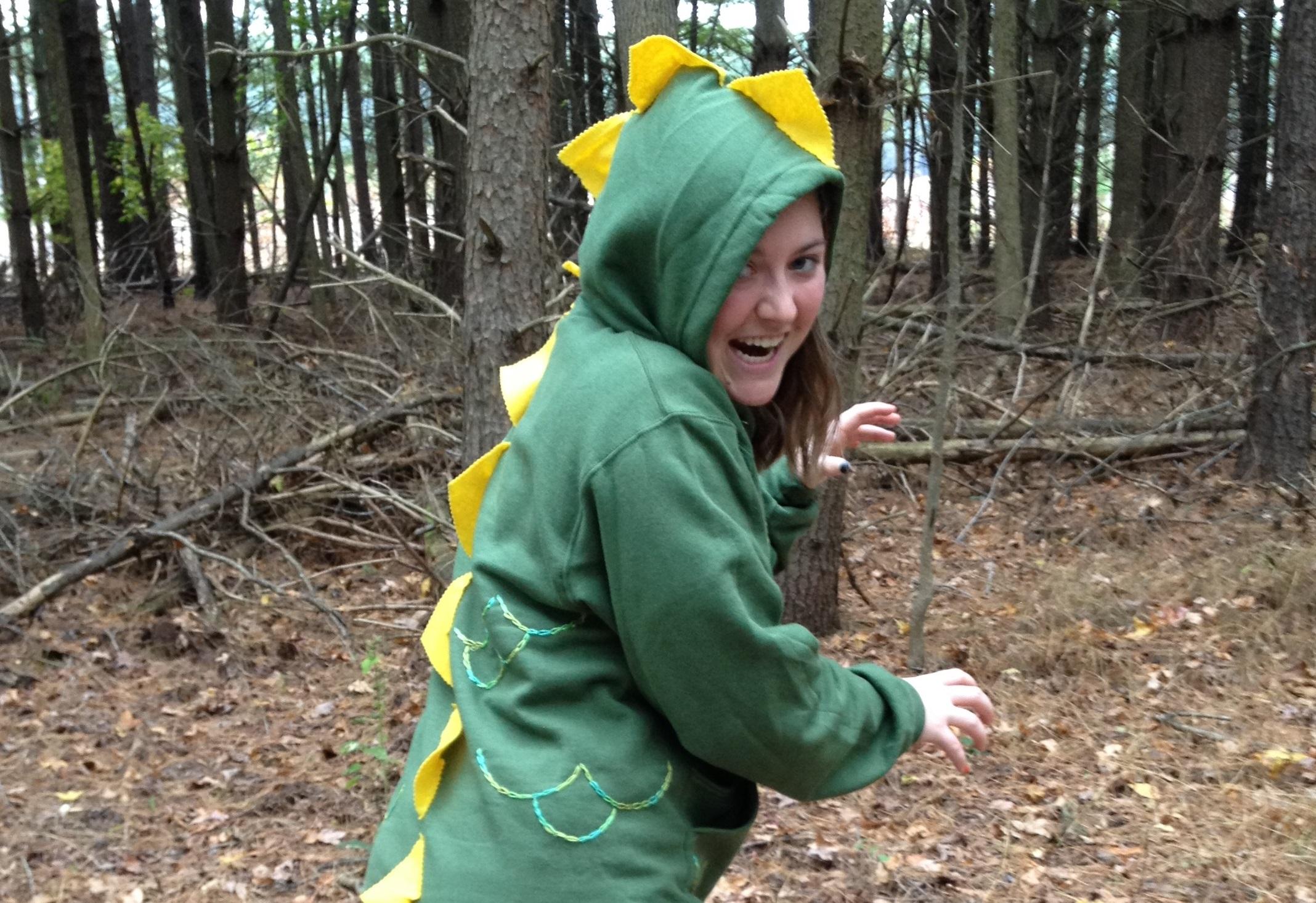 O primeiro passo para fazer fantasia de dinossauro é escolher um moletom como base do nosso fato. Se você tiver um macacão pijama em casa ainda melhor, pois assim pode ter o fato completo.