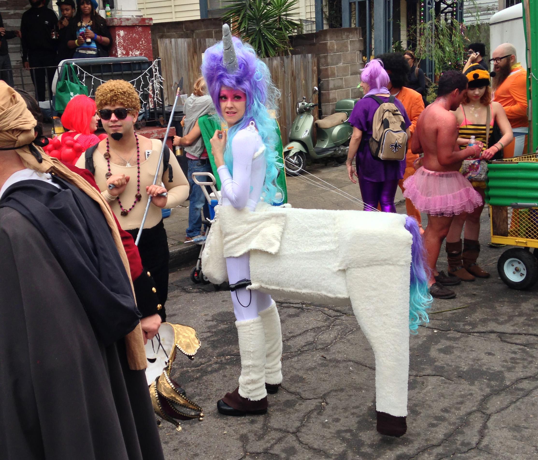 Além disso, se você deseja fazer uma parte de trás para o unicórnio, como um centauro, basta acoplar algumas caixas de papelão brancas à sua cintura com um suspensório, dando a impressão de ter um corpo de cavalo junto a seu corpo. Apesar de não ser a mais fácil das opções, você pode conseguir um resultado maneiro, inovador e bastante raro.