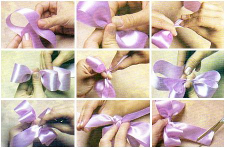 - Pegue na segunda fita, passe-a ao redor do centro do laço e dê o nó na parte de trás do mesmo.