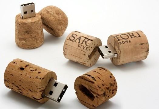 Uma das lembrancinhas de casamento para os homens convidados são pequenas pendrives com formas divertidas: desde pendrives escondidas em personagens animados como Homer Simpson a outros, como o que propomos na imagem, que se esconde em uma rolha de vinho.