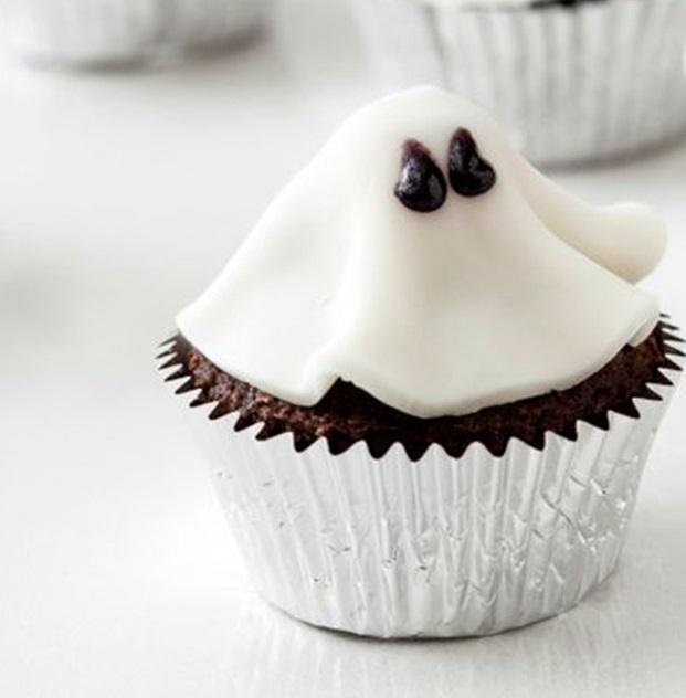- Quando estiverem completamente duros, coloque cada fantasminha no bolinho e estará pronto o seu cupcake de Halloween!