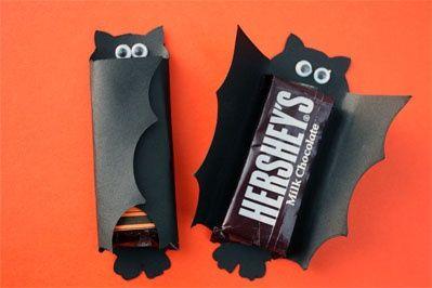 Uma ideia bastante original para lembrancinhas de Halloween é fazer docinhos voadores. Você pode fazer um morcego ou fantasma de cartolina e colocar no seu interior balas, chocolates ou pirulitos. Faça um molde de um morcego ou fantasma, se quiser procure na web por um e imprima. Depois é só colocar por cima de cartolina branca ou preta, delinear e recortar. No meio do morcego ou fantasma, coloque os doces, feche as asas e prenda com fita cola. Decore estes bichinhos ao seu gosto e terá umas originais lembrancinhas de Halloween.