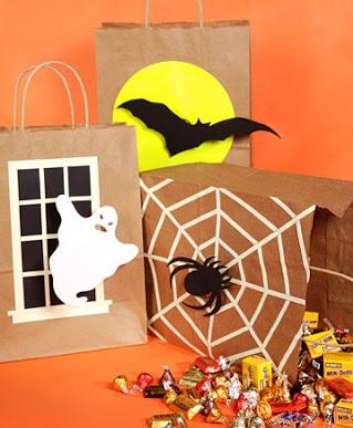Você também pode colocar simplesmente doces em sacolas de papel decoradas e oferecer como lembrancinhas de Halloween. Decore as suas sacolas com teias de aranha, fantasmas, morcegos, bruxas, dê asas à sua imaginação e faça decorações assustadoras para as suas sacolas de papel.