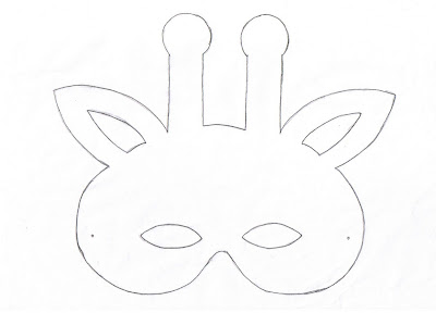 Para fazer a máscara de girafa da imagem ao lado, corte EVA amarela de acordo com este molde de cara de girafa, depois cole nela várias manchinhas em EVA marrom escura e, sobre os olhos e abaixo dos corninhos, alguns pelos em EVA marrom clara.