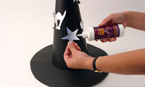 - Adicionar glitter ao chapéu de bruxa! Caso não tenha muitas habilidades com artesanato, veja como colocar glitter em roupa;