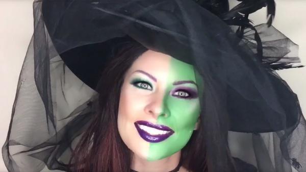Toque final: a maquiagem de bruxa é muito importante para compor a fantasia de bruxa. Você pode fazer como a modelo da foto, pintando metade do rosto de verde, ou caprichar numa maquiagem mais gótica. Veja como a seguir:
