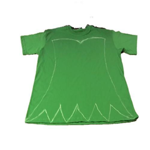 Pode criar a sua própria fantasia de sininho com tecido verde, com uma camiseta grande como a que vê na imagem. Apenas tem que desenhar a forma do seu vestido e recortar o tecido à volta. Em seguida, terá que coser do avesso e dar a volta, e assim já tem a parte superior da sua fantasia caseira pronta. Se já tiver um vestido verde no seu armário, já tem o seu trabalho facilitado para montar a fantasia de sininho.