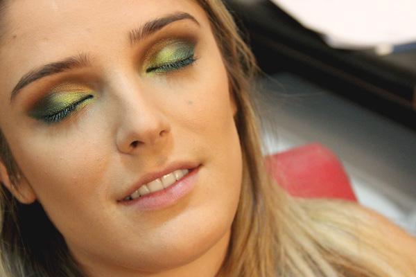 Quanto à maquilhagem, faça um esfumado verde lindo nos olhos. Para isso, comece por marcar o côncavo com uma sombra marrom clara ou dourada. Depois aplique uma sombra verde na pálpebra móvel. No canto externo do olho aplique um pouquinho de sombra verde escura e esfume bem. Utilize essa mesma sombra verde escura para delinear rente aos cílios inferiores com um pincel de base reta. Coloque máscara de cílios e já tem o seu olho de sininho pronto. Agora para finalizar a make, aposte em um batom nude e blush para destacar as maçãs do rosto.