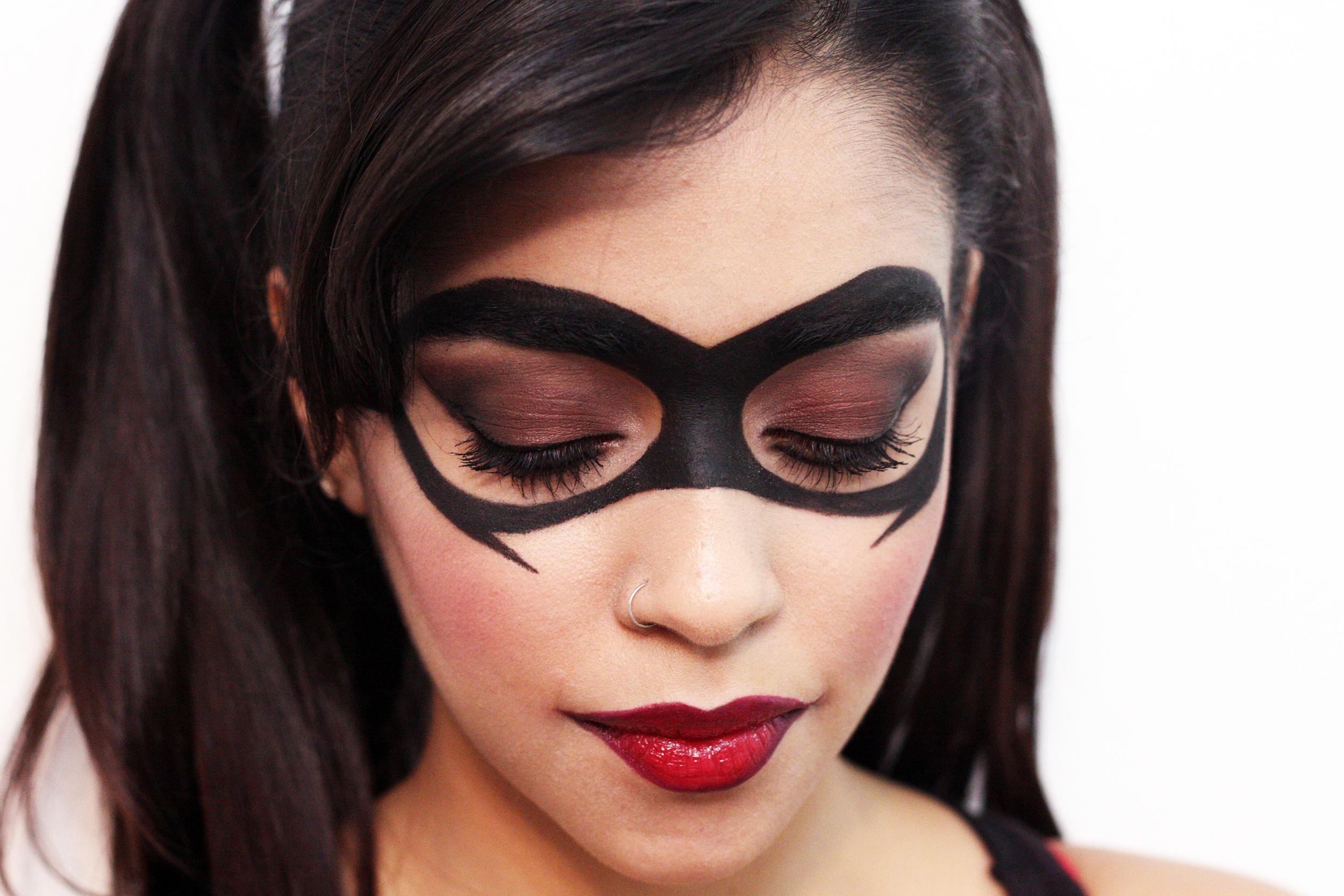 Para fazer a make da Alerquina, aposte em uns smokey eyes. Neste vídeo poderá aprender o truque da fita adesiva para esfumar olhos, muito simples. Contorno os lábios com um lápis vermelho, mas faça o contorno um pouco fora da linha dos seus lábios. Pinte os lábios com um batom vermelho e finalize a make com um blush rosado. Agora ao invés de comprar uma máscara de carnaval preta, você pode pintar a própria máscara de olhos na pele. Comece por fazer o contorno da máscara com um lápis preto e preencha com sombra preta. Não precisa seguir exatamente o modelo da foto, use a sua imaginação e crie a máscara da forma que mais gostar.