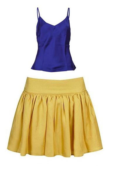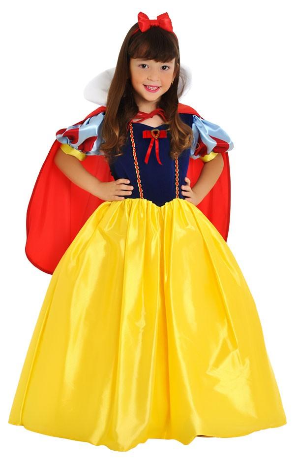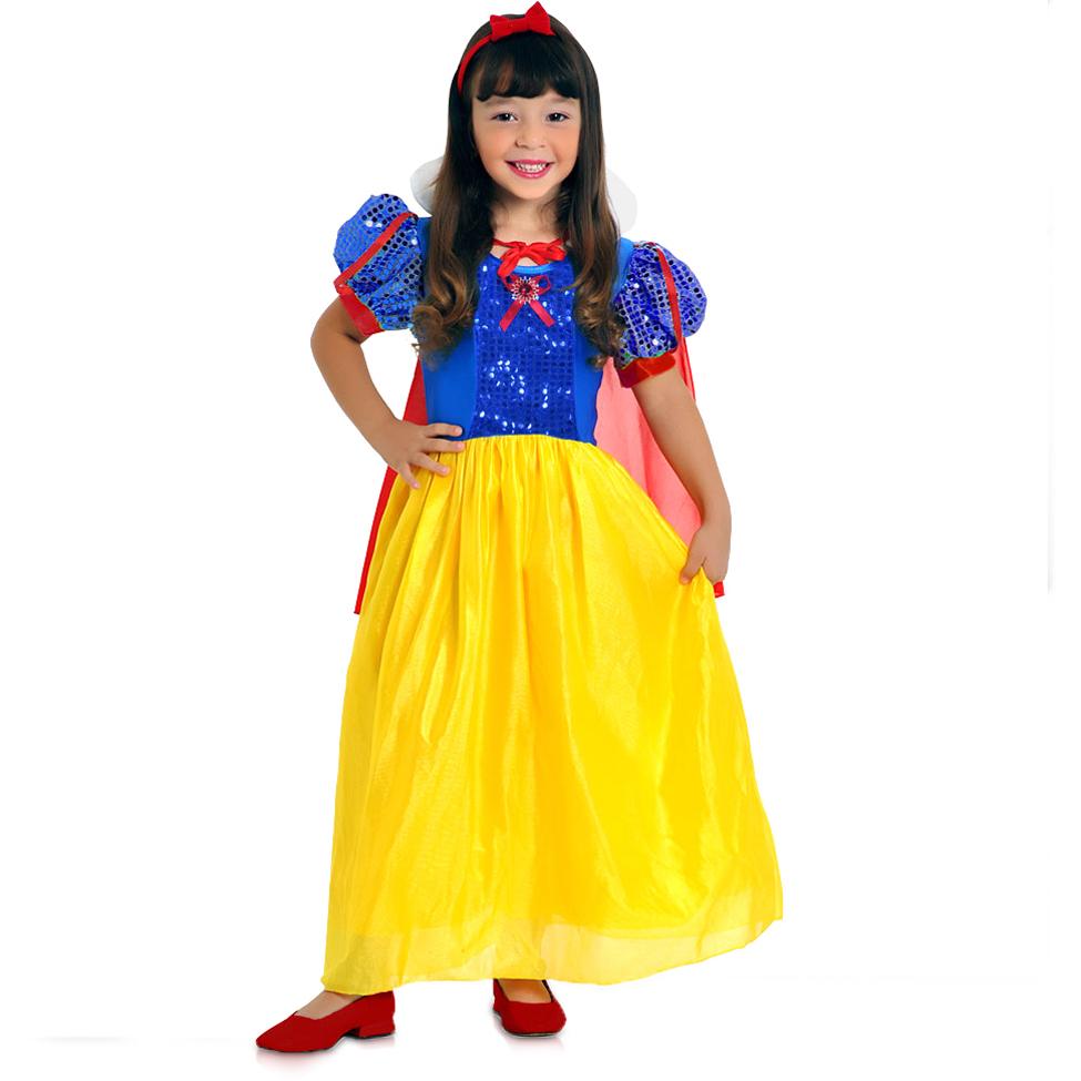 Para a fantasia de Branca de Neve você vai precisar de um vestido como o da imagem acima. É provável que não tenha nenhum com estas características no seu armário, mas se tiver uma camiseta azul e uma saia (curta ou comprida) amarela e rodada já terá o trabalho facilitado. Se ainda assim, não tiver estas peças no seu armário e tiver habilidade para a costura, poderá fazer o seu próprio vestido de Branca de Neve. Utilize tecido de cetim ou outro tipo de tecido idêntico azul escuro e amarelo para tornar a sua fantasia de Branca de Neve mais autêntica.