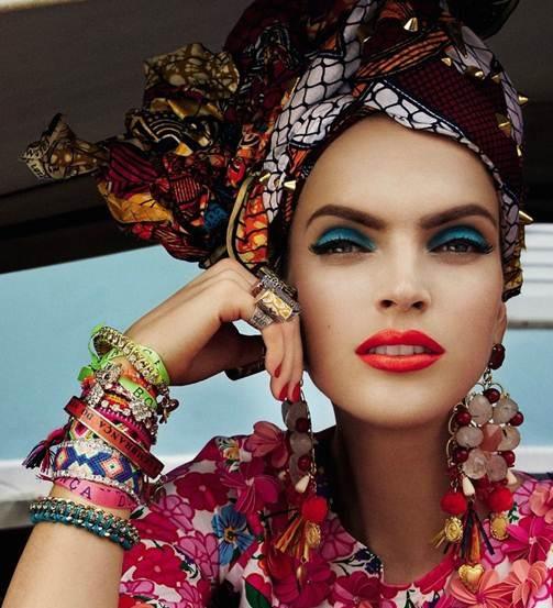 Se você se quer inspirar em Carmen Miranda para a sua fantasia de carnaval, tem que apostar em roupa e maquiagem coloridas. No que diz respeito ao vestuário, a aposta deve ser em roupas coloridas de tecidos leves e bem extravagantes. Procure por um vestidinho ou uma saia e um top em seu armário bem colorida, se tiver alguma estampa tropical ou de frutas melhor ainda. Não tenha medo de combinar estampas coloridas diferentes, isso é uma das coisas que definem o estilo de Carmen Miranda. Folhos nas peças de roupa são sempre bem vindos no estilo de Carmen, por isso se as suas peças não têm este elemento seria uma boa ideia adicionar alguns folhos.