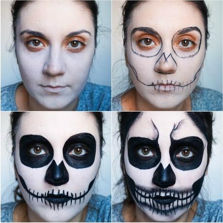 - Pele: a primeira coisa a fazer é maquiar a base do seu rosto com pintura branca para conseguir aquela aparência assustadora e surreal. Você pode usar pasta base (encontrada em farmácias e utilizada para queimaduras) ou uma base de alguns tons abaixo da sua cor.