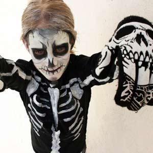 E, para terminar de se fantasiar de esqueleto e dar-lhe o toque final a este assustador e divertido fato, pode maquiar o seu rosto como uma caveira. Se preferir algo mais simples, pode comprar uma máscara de caveira simples e completar assim a sua fantasia de Halloween.