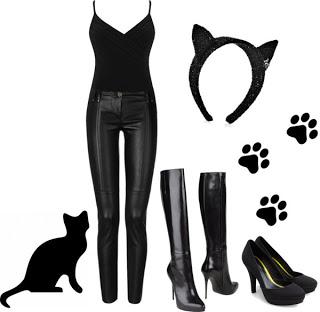 Outra fantasia que você pode montar rapidamente é a de mulher gato. Para a fantasia de mulher de gato escolha roupas de couro ou cetim e com brilhos, de preferência opte por uma calças justas e um corset. Aposte em uns sapatos de salto alto ou botas de cano alto e complemente com uma máscara de renda ou umas orelhas de gato, se conseguir arranjar a tempo.
