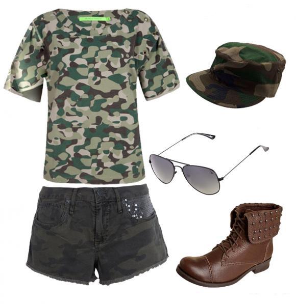 A fantasia de militar também é bem fácil de montar. Basta ter alguma calça ou short com uma estampa camuflada e combinar com uma regata ou camiseta verde militar. Se tiver algum macacão verde militar também o pode usar. Caso tenha umas botas do estilo coturno militar esta é a altura ideal para as calçar. Consiga uma boina e já tem a sua fantasia pronta!