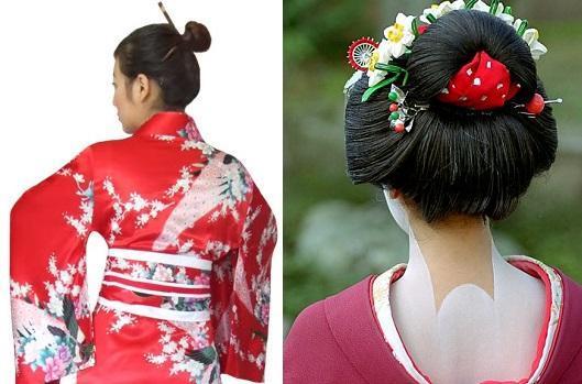 Mas não há fantasia de japonesa que fique completa sem o penteado e a maquiagem ideal. Se você tiver o cabelo escuro então será muito simples obter uma imagem similar à das gueixas. Recolha seu cabelo para trás em um coque para conseguir o look destas míticas mulheres japonesas. Você pode fazer isso seguindo as instruções do nosso artigo como fazer um coque antigo. Se quiser, você pode decorar o coque com alguma flor, ou usar os palitos chineses para dar um toque divertido neles.