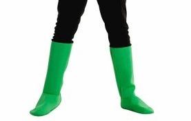 Se tiver algumas botas de cano alto verdes, melhor. Caso contrário, também poderá usar uns sapatos pretos e colocar umas perneiras ou meias verdes por cima das calças pretas.