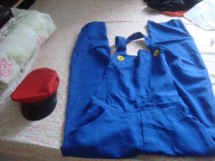 Para a fantasia de Maria Bros precisa de um macacão azul elétrico com dois botões amarelos. Se tiver habilidade para a costura poderá fazê-lo você mesma. Um macacão de ganga também serve, por isso se tiver algum pode utilizá-lo.