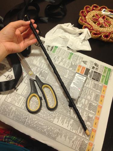 - Aplique a cola no palito e vá enrolando-o com a fita, até o fim;