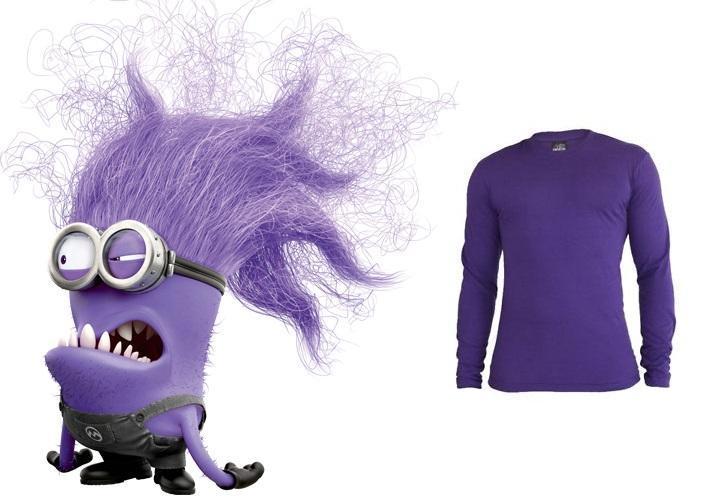 Para começar a fazer a fantasia de minion roxo começaremos pelo corpo. Neste caso as personagens têm uma pele roxa, de maneira que para simular o corpo roxo o mais simples é conseguir uma camiseta de manga comprida desta mesma cor. Um suéter também pode ficar muito bem desde que seja sem capuz. Mais adiante você entenderá por que.