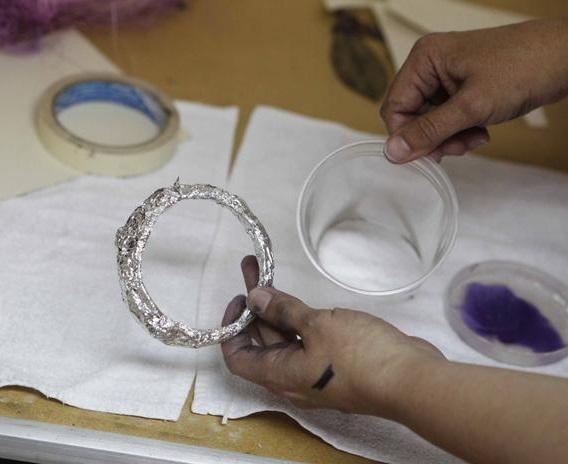 Já temos o traje de minion roxo, agora vamos ver os óculos. Os deste tipo de minion são mais metálicos que os dos minions tradicionais, de maneira que você precisará de papel alumínio. Você pode fazê-los com papelão, com uma garrafa de plástico ou inclusive com um copo de plástico. Em todos os casos, corte um círculo com uma largura de 2-3 cm e forre-o com papel alumínio.