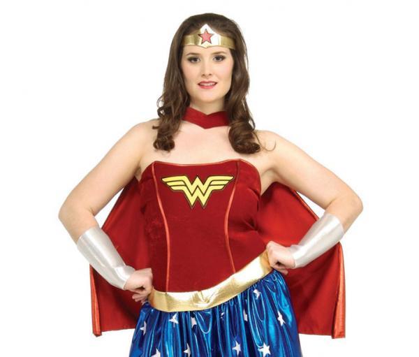 Como acessórios, deverá criar umas pulseiras douradas ou prateadas que podem ser feitas com o mesmo tecido do cinto, ou tentar encontrar pulseiras metálicas suficientemente largas. Também pode usar como complemento à fantasia de Mulher Maravilha uma corda dourada que se assemelhe à corda invisível que a heroína usava.
