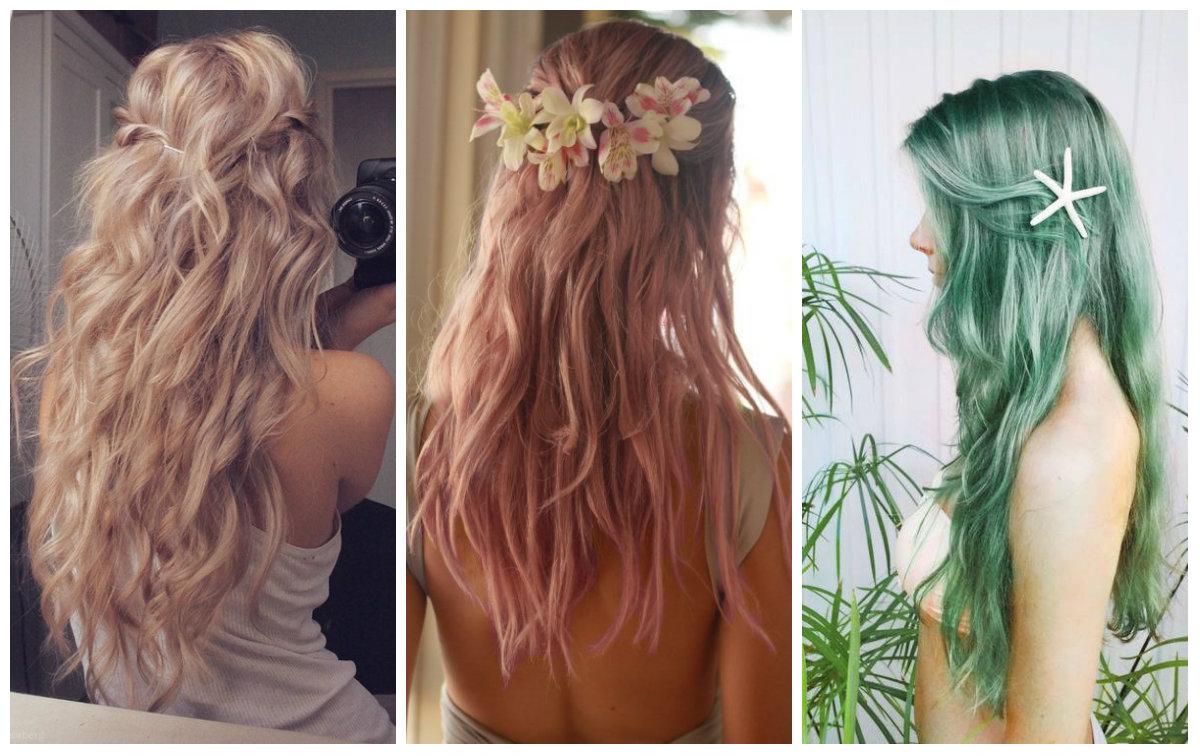 Para complementar a sua fantasia de sereia, penteie o seu cabelo de forma ondulada e com um aspeto molhado como se tivesse acabado de sair do mar, o que pode conseguir utilizando espuma para cabelo. Coloque uma tiara de conchas ou então algum grampo com a forma de concha.