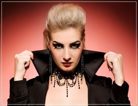 Peças como espartilhos, rendas escuras e meias finas ajudam a alcançar o efeito, assim como uma maquiagem não tão óbvia, mas que use cores e referências ao tema vampiresco.