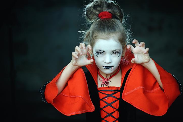 No caso das meninas, todas as dicas dadas anteriormente são válidas inclusive o sangue falso. A diferença é que o apelo não deve ser sexual, assim como o uso de salto e peças de roupas como espartilho, por exemplo. Para conseguir uma fantasia de vampira infantil feminina, aposte em vestidinhos mais escuros ou vermelhos e a capa de vampira, que dá o toque final e as crianças costumam adorar.