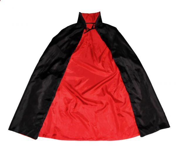 Fantasia de vampiro com capa dá aquele "Q" a mais que te deixa mais caracterizado, para isso você deverá fazer uma capa comprida para levar atada ao pescoço e cobrir os ombros e necessitará de tecido preto e vermelho, assim como também espuma (ou algum outro material resistente) para fazer uma gola que se mantenha levantada. Pode ver no nosso artigo como fazer uma capa de Halloween.