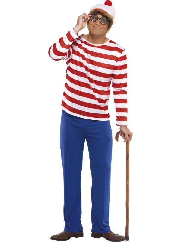 Para finalizar a sua fantasia de Wally, coloque uns óculos redondos pretos e use uma bengala como complemento.