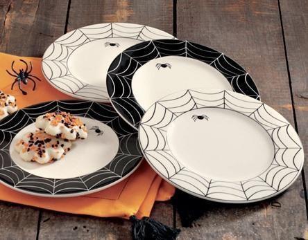 - Encha sua mesa de enfeites de Halloween pondo uma toalha de mesa com desenhos de aranhas, por exemplo, ou uns pratos onde apareçam teias de aranha nas bordas. Sobre a mesa também pode espalhar diferentes abóboras que darão um clássico toque à sua celebração.